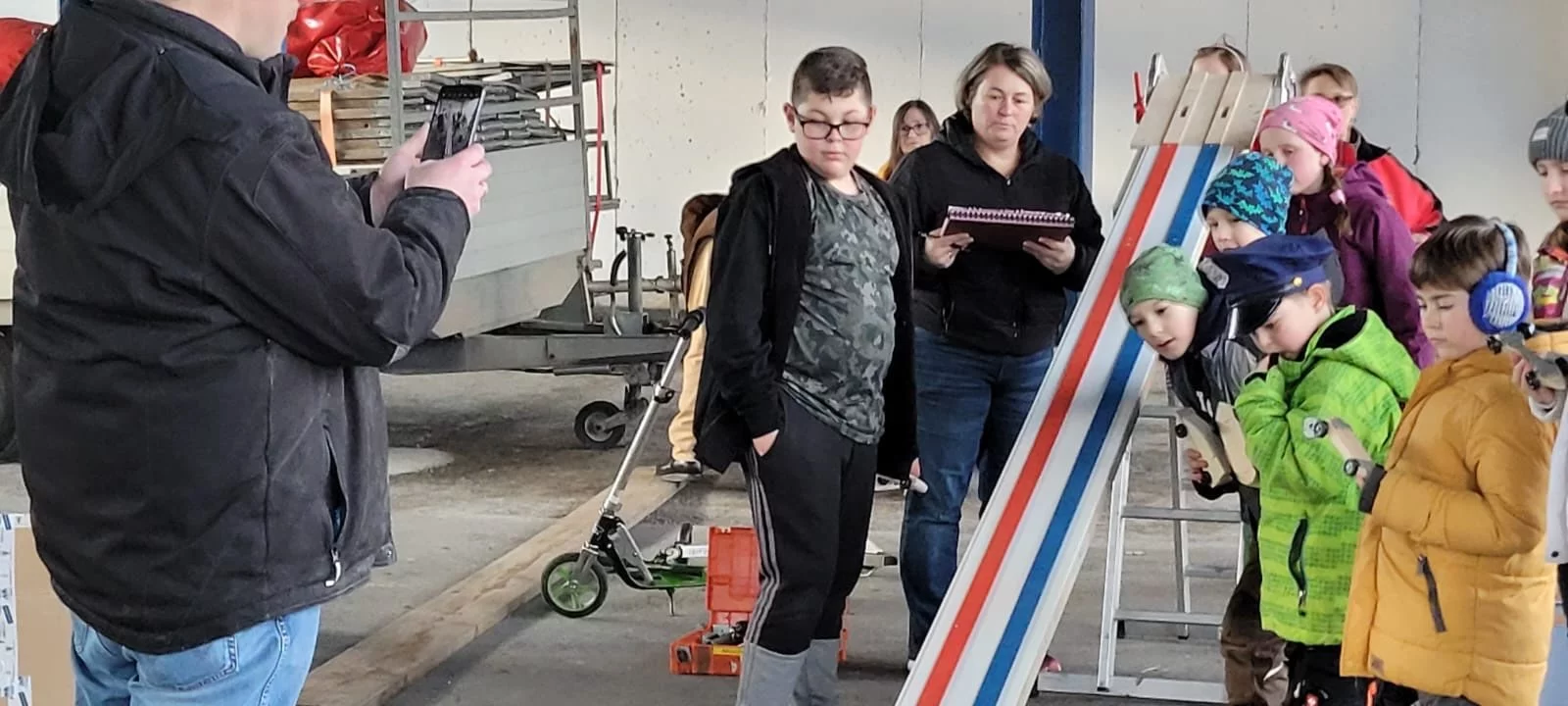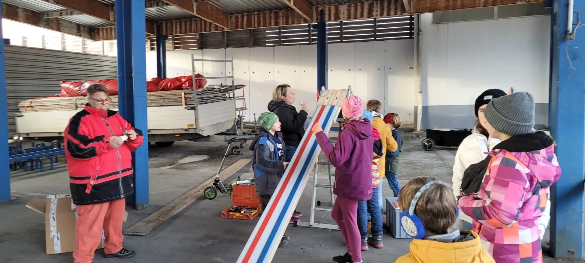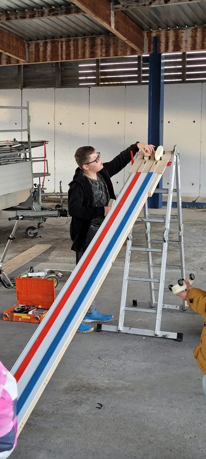 Als Erhöhung haben wir eine Bockleiter gewählt. Dort wird dann die Startrampe eingehängt.