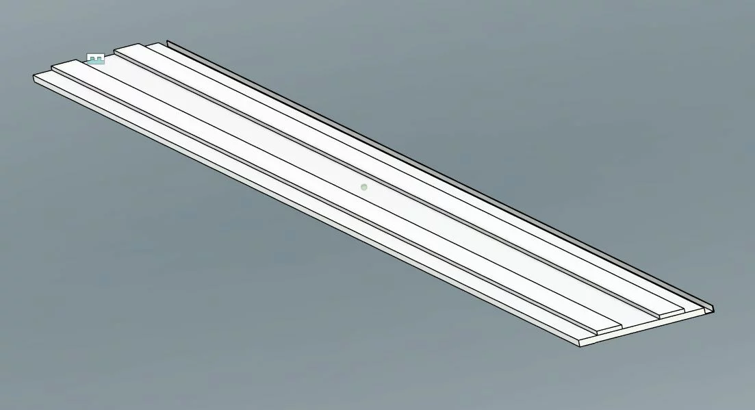 Streckensegment, 3m, bzw. Rollladenkastendeckel mit aufgeklebten Spurführung