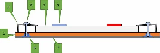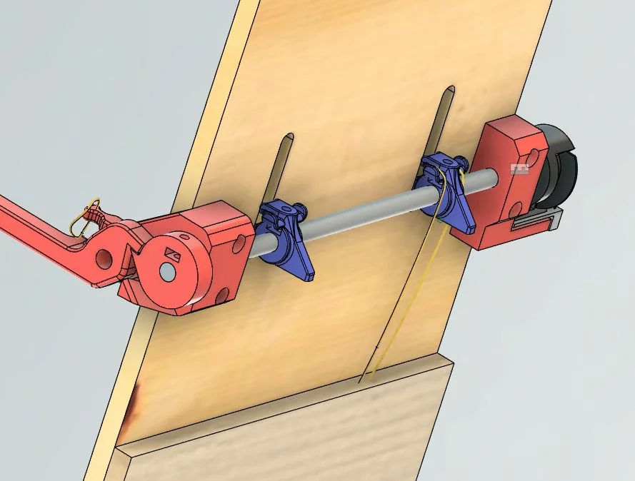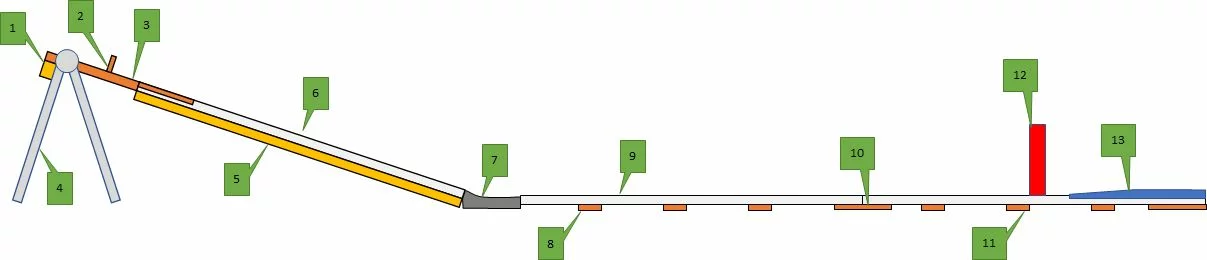 Startrampe von unten, mit Gummi - Zugelemente und Auslöser für Zeitmessanlage