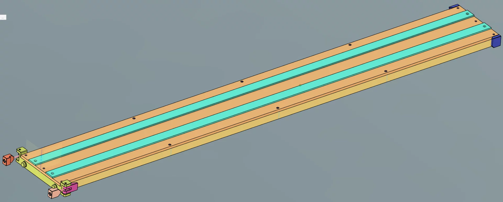- Führungsprofil, Holz, Multiplex 4mm, farbig bemalt, aufgeklebt mit Konstruktionsklebeband (2x)